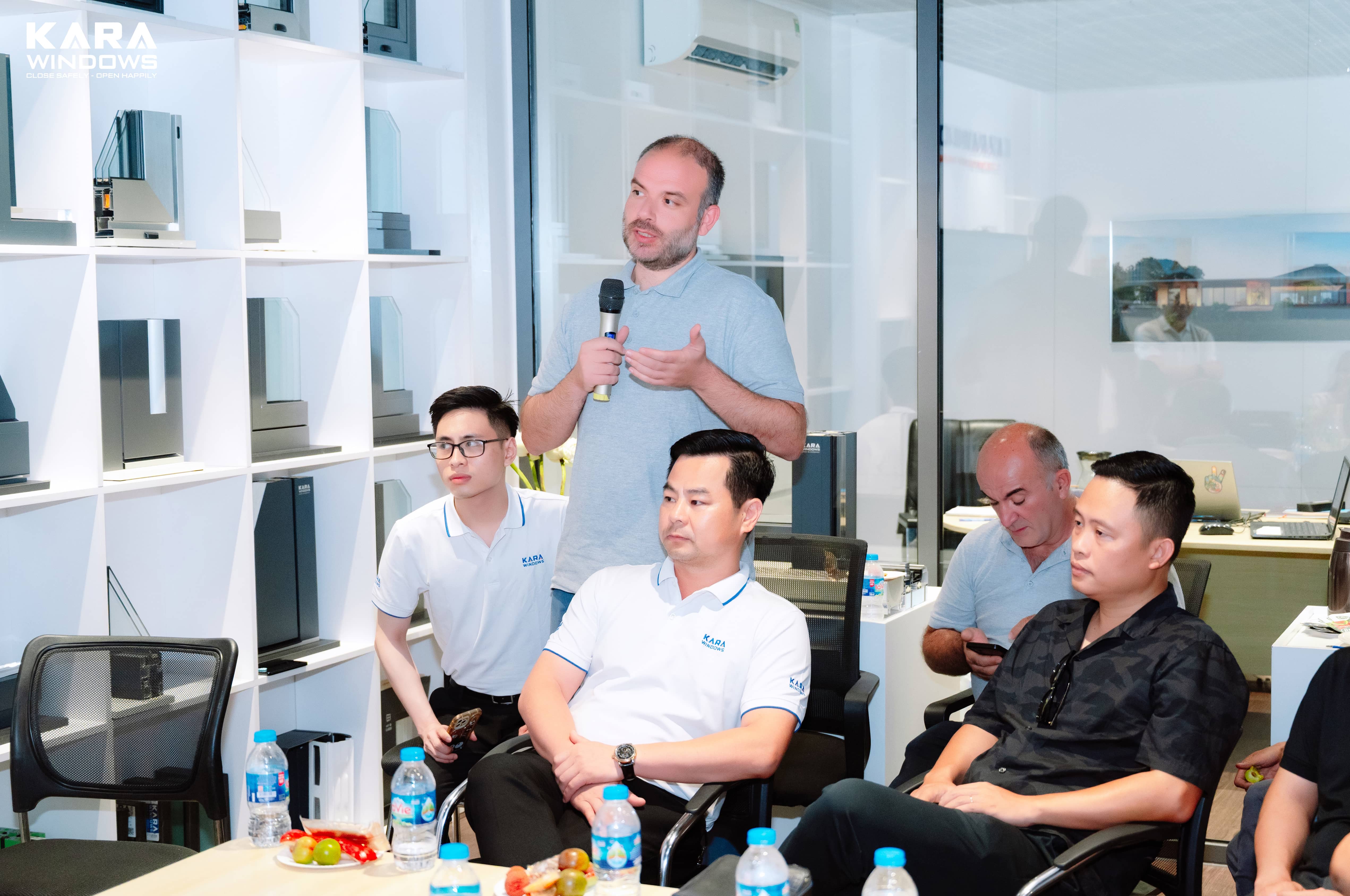 Cuối buổi đào tạo, đại diện phòng kỹ thuật Karawindows đã có phần đặt câu hỏi – phản hồi thực tiễn với các chuyên gia Alumil.