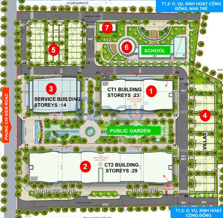 - Tầng 1-2: tầng dịch vụ và sinh hoạt cộng đồng ( dịch vụ, nhà trẻ, sinh hoạt cộng đồng)