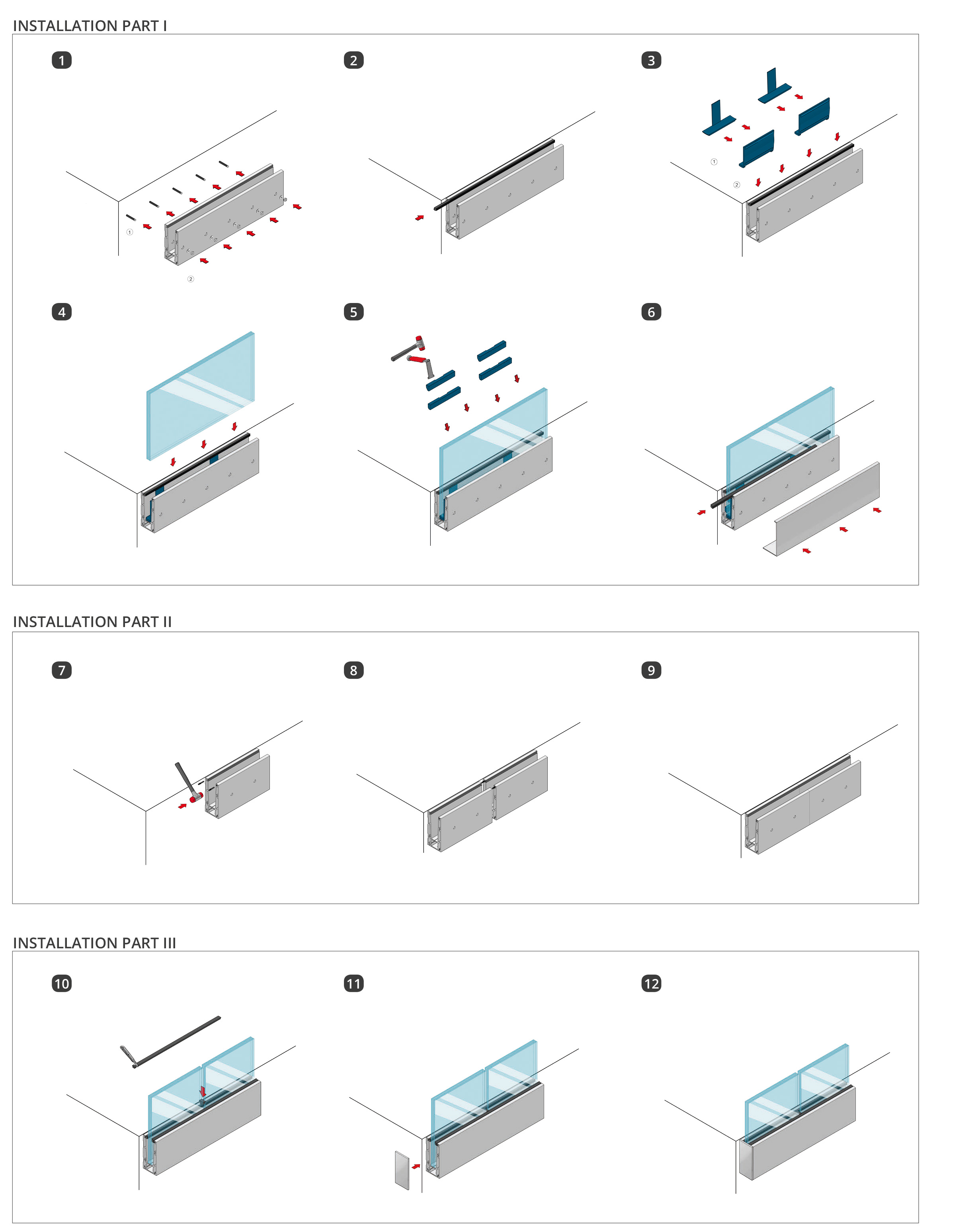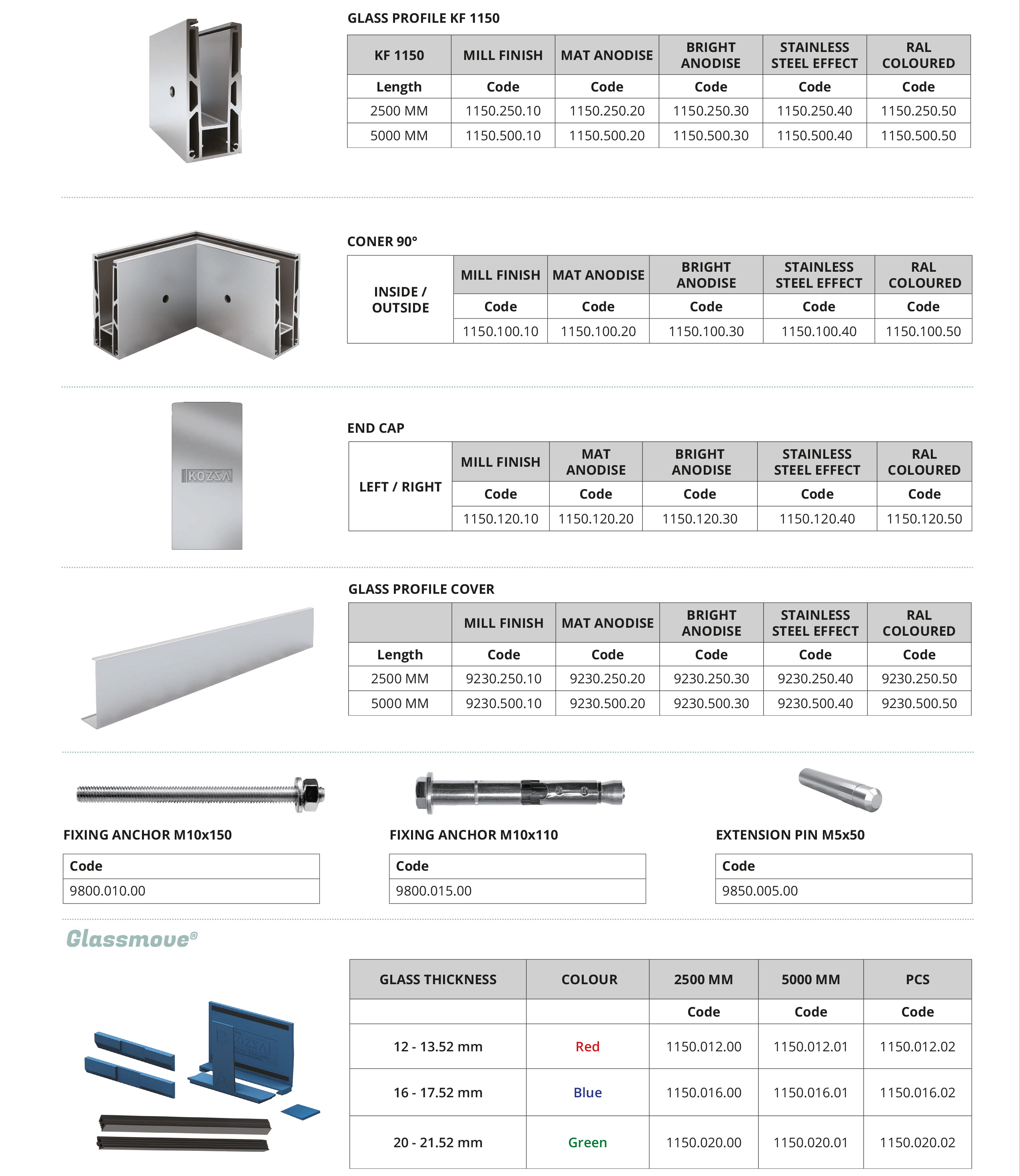 Cơ chế Glassmove®, cung cấp tính linh hoạt cho kính. KF 1150 series, lắp bên cạnh sàn, được thiết kế và phát triển bởi Kozza Railing.