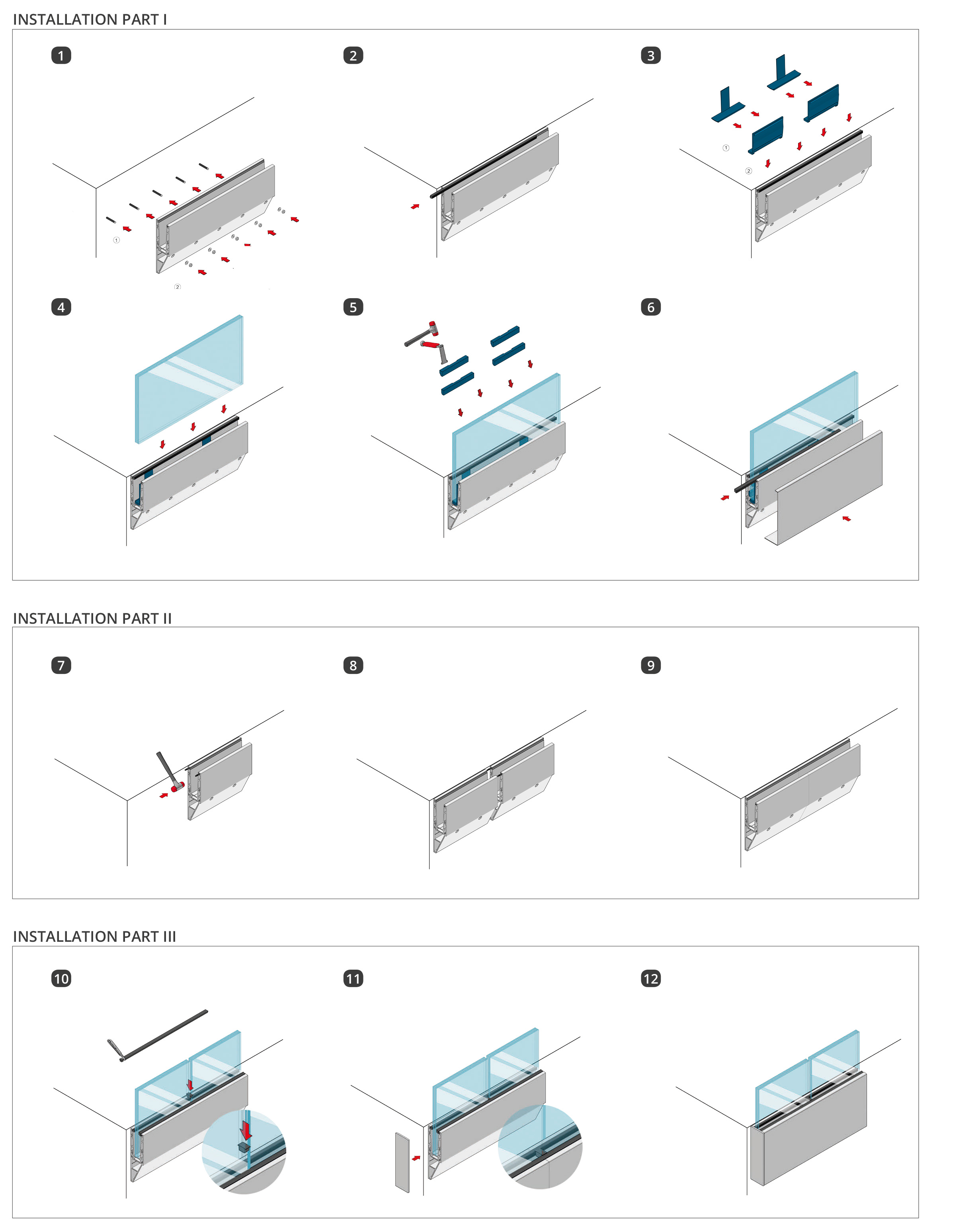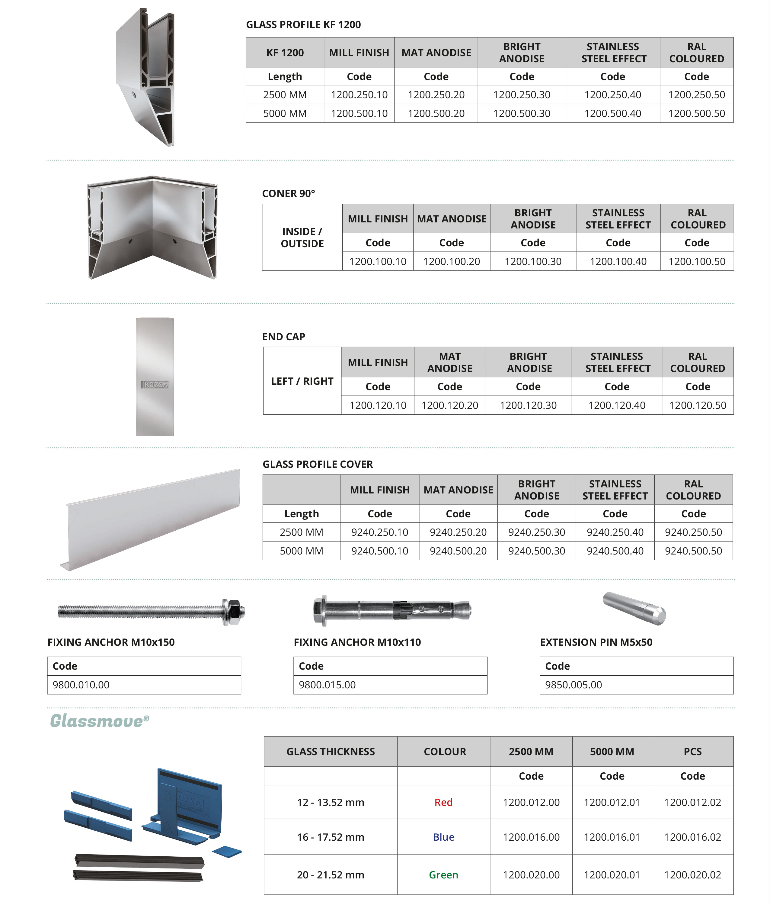 Cơ chế Glassmove®, cung cấp tính linh hoạt cho kính. KF 1200 series, lắp bên cạnh sàn, được thiết kế và phát triển bởi Kozza Railing.