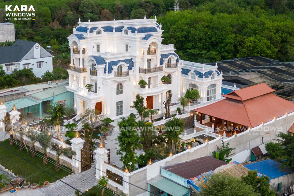 Mang đậm nét phong cách Kiến trúc Tân cổ điển với những đường nét hoa văn uốn lượn, với những chi tiết mái vòm, các đường chỉ phào dày đặc tạo nên một Công trình kiến trúc có tính nghệ thuật cao. Ngoài giá trị thẩm mỹ, Biệt thự Hoa lan Bình Phước còn thể hiện sự giàu sang và đẳng cấp của Gia chủ.
