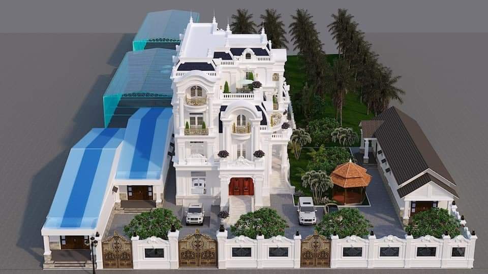 Quy mô công trình gồm 01 tầng hầm, 04 tầng nổi với các phòng và khu vực chức năng: 01 Phòng khách, 01 Phòng ăn + Bếp, 01 Phòng ngủ Master, 04 Phòng ngủ thường, 01 Phòng thờ, 01 Phòng gym, Khu giặt ủi + Soạn đồ, Bể bơi, Sân vườn.