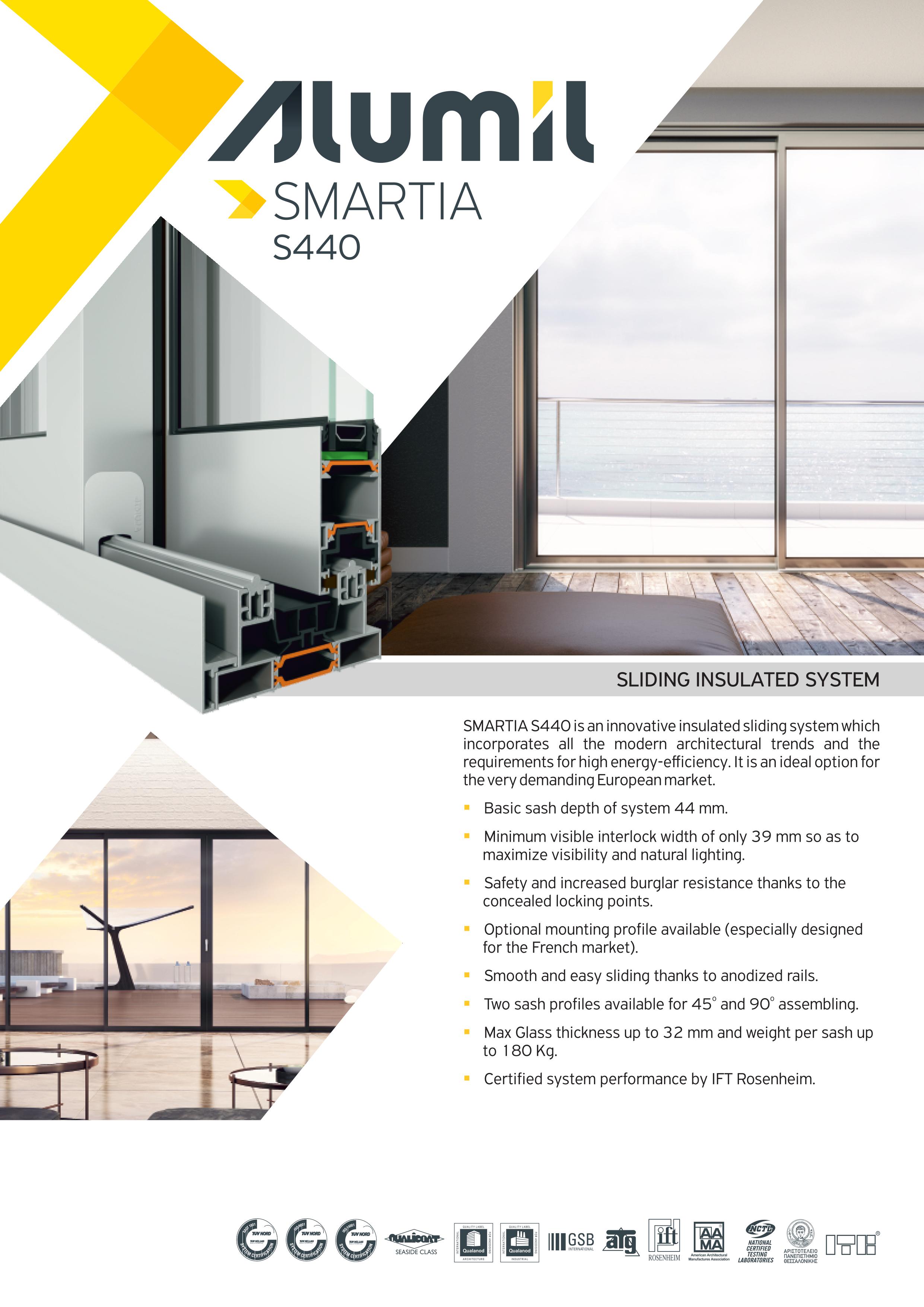 Hệ thống trượt cách nhiệt SMARTIA S440 được thiết kế sáng tạo phù hợp với kiến trúc hiện đại và các yêu cầu về hiệu quả năng lượng cao. Đây là một lựa chọn lý tưởng cho thị trường Châu Âu rất khắt khe.