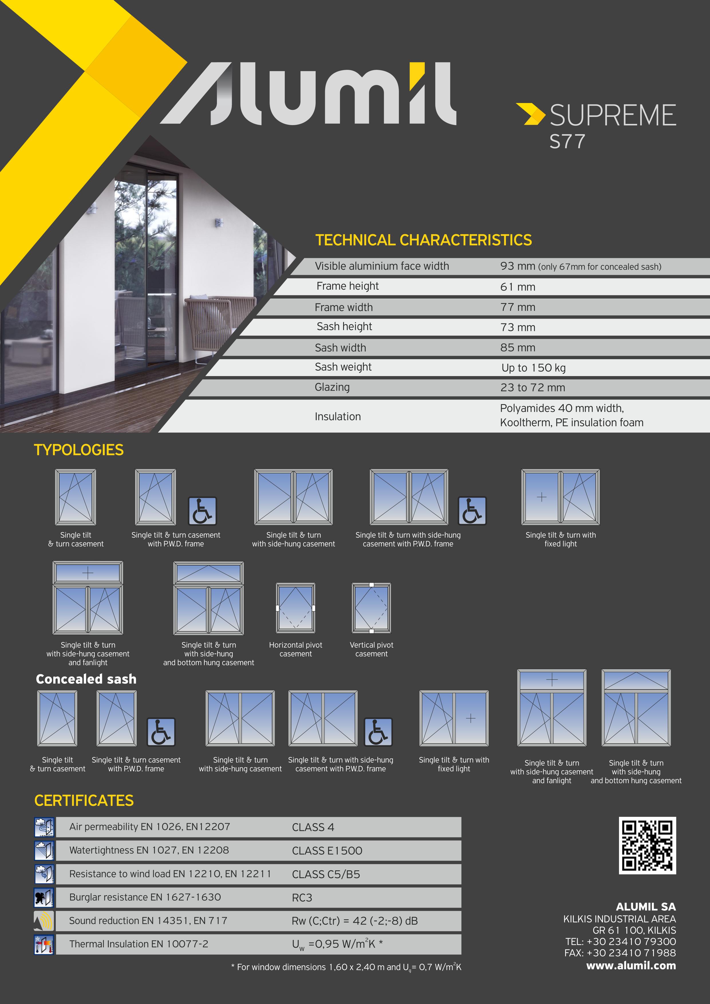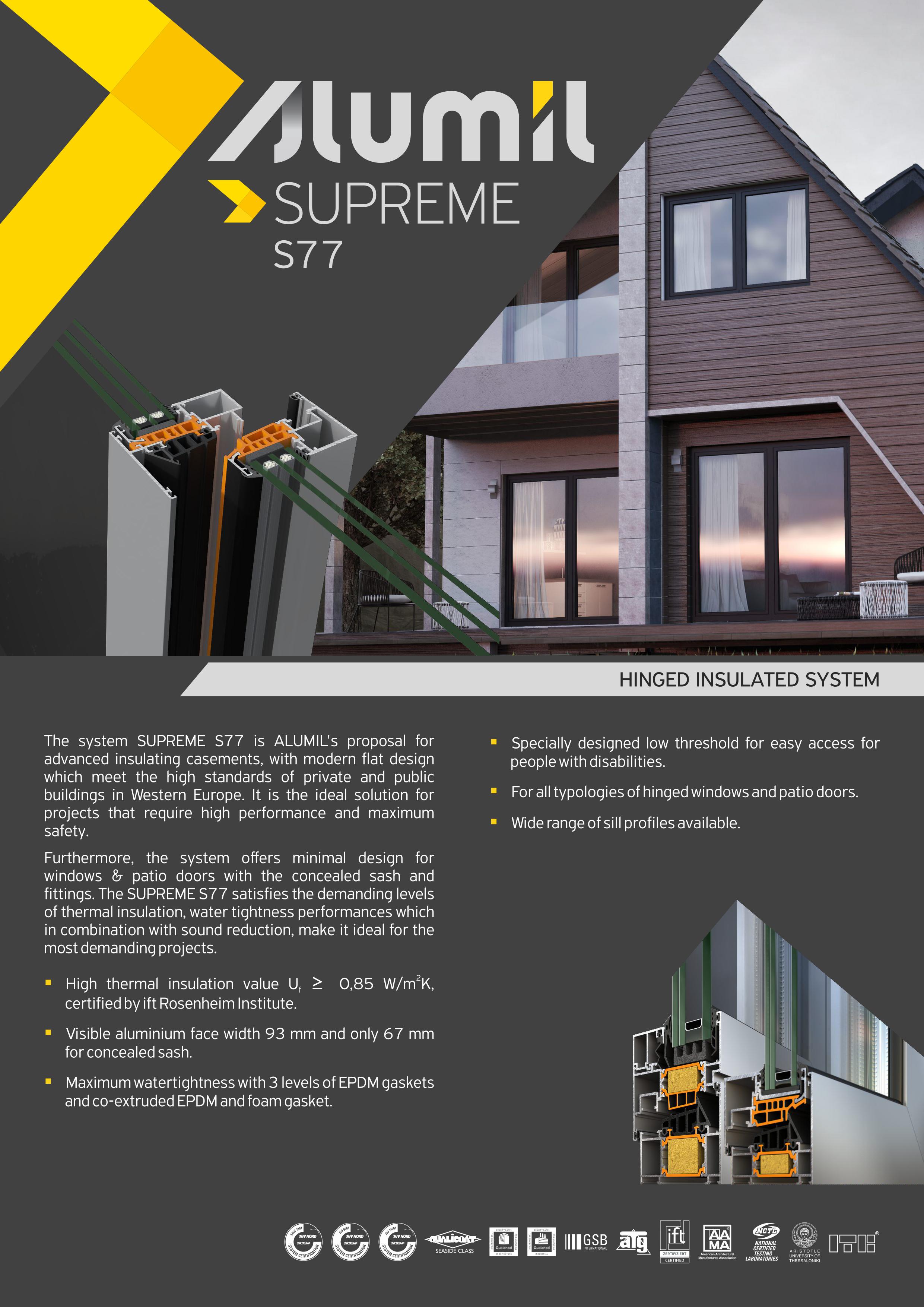 SMARTIA S77 là đề xuất của Alumil cho hệ thống cửa mở quay bao quanh ngôi nhà với hiệu suất năng lượng được chứng nhận Passive house và mức kháng chống trộm lên tới RC3.