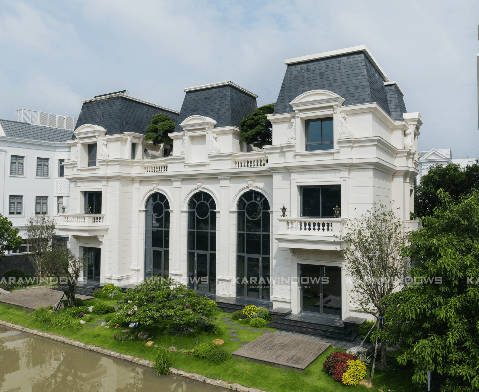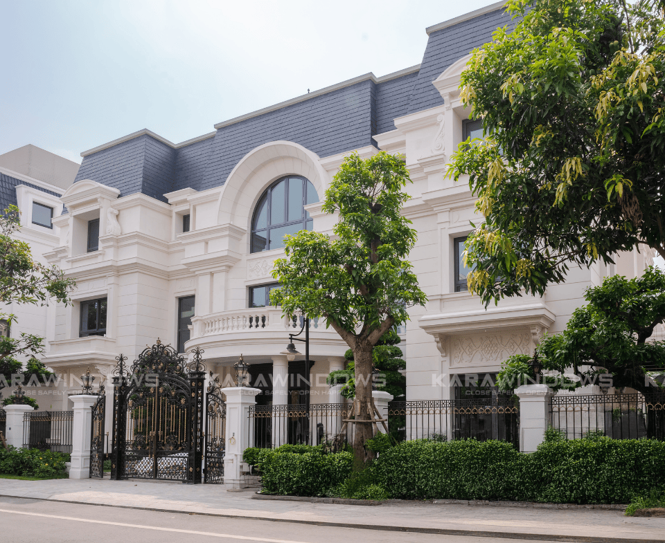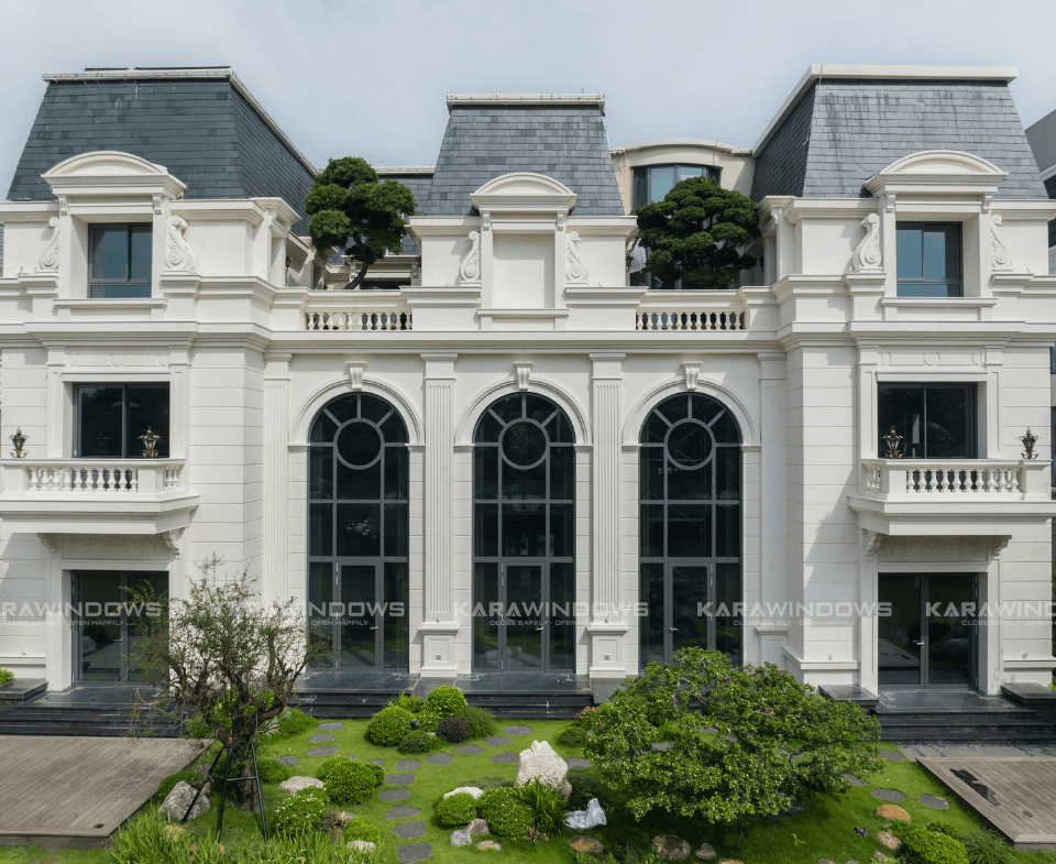 Trong tổng thể công trình, hệ cửa và vách kính đóng vai trò kết nối không gian, đồng thời là yếu tố quyết định đến trải nghiệm sống bên trong. Karawindows đã cung cấp và triển khai đồng bộ các hệ cửa cao cấp, đáp ứng yêu cầu khắt khe của một biệt thự mang phong cách kiến trúc châu Âu.