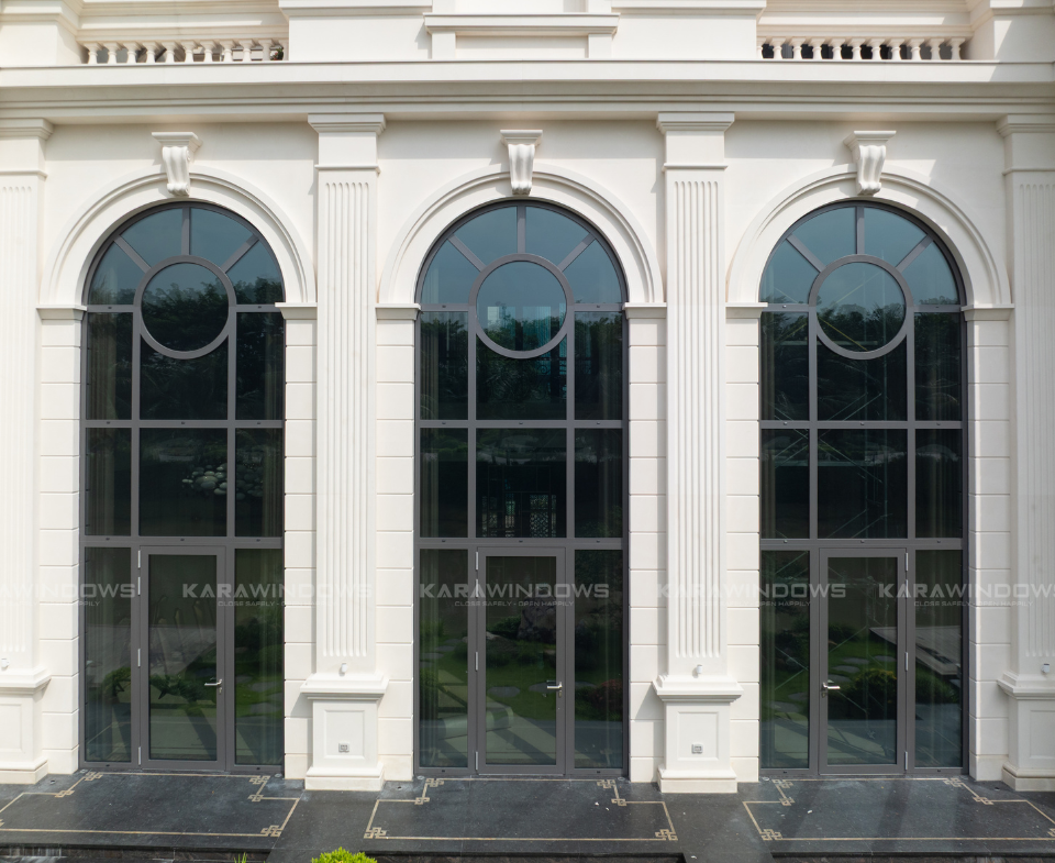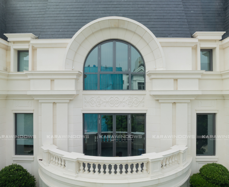Các giải pháp cửa tại công trình được lựa chọn từ dòng nhôm cao cấp nhập khẩu đồng bộ 100% từ Đức, thuộc thương hiệu Hueck – hơn 200 năm lịch sử phát triển. Sự đồng nhất về tiêu chuẩn vật liệu và công nghệ không chỉ đảm bảo tính thẩm mỹ tinh tế, mà còn mang lại độ bền vững vượt thời gian. Đặc biệt, hệ vách kính khổ lớn kết hợp cùng kính uốn vòm theo ngôn ngữ kiến trúc Hy Lạp tạo nên dấu ấn thị giác khác biệt, đồng thời thể hiện năng lực thi công chính xác ở mức cao của Karawindows.