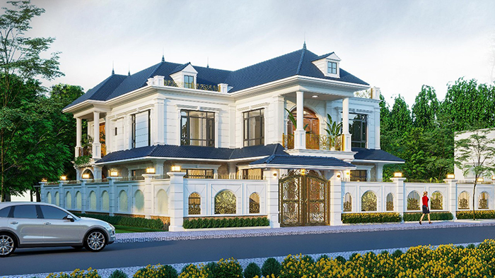 Tổng quan về dự án: Diện tích sàn xây dựng 300m2 trong khuôn viên 1000m2, được bố trí với 1 phòng khách, 1 phòng ăn, 1 phòng sinh hoạt chung, 4 phòng ngủ, 6 phòng vệ sinh, 1 phòng thờ, 1 phòng Gym, Phòng nghe nhạc.