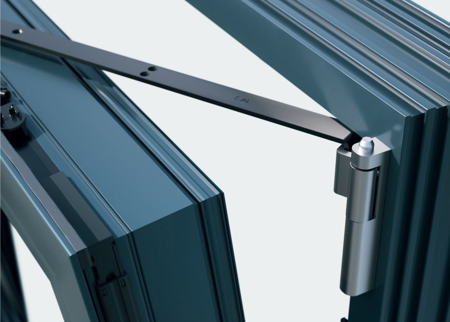 Để ngăn bản lề ảnh hưởng đến niêm phong của cửa sổ, bản lề của cửa sổ kim loại thường được hàn vào bên ngoài của hồ sơ cửa sổ. Khóa cửa sổ ngoài là khóa thẻ xoay, tay nắm cửa sổ thường kết hợp với ổ khóa. Khóa cửa sổ bên trong thông thường có thể là chốt đơn giản nhưng việc sử dụng chốt cũng có một nhược điểm, đó là không có chức năng nén của khóa thẻ xoay.
